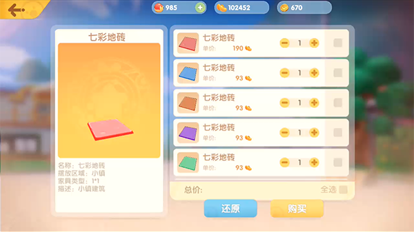七彩地砖是小镇的专属装饰地砖之一,需要在小镇找到装饰店叮当当购买,而且购买后只能在小镇中使用,每次购买都需要消耗对应的摩尔豆。