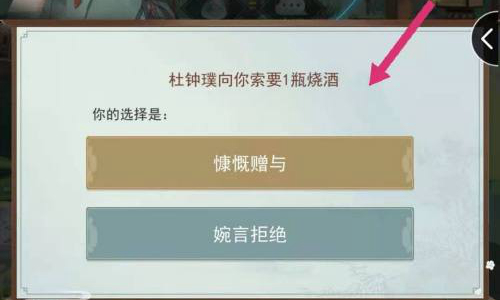 然后你需要给他赠送一坛酒,酒的质量决定了后面获取物品的好坏。