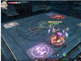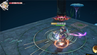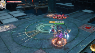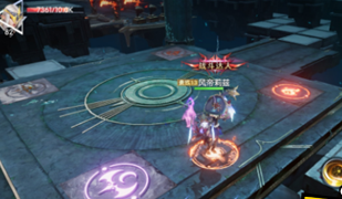 向右侧进发,完成打怪。此处有2个岔路,先进右边道路,左转到达第一个元素石板。此处密码是水+风+光+暗,4个全部踩亮。