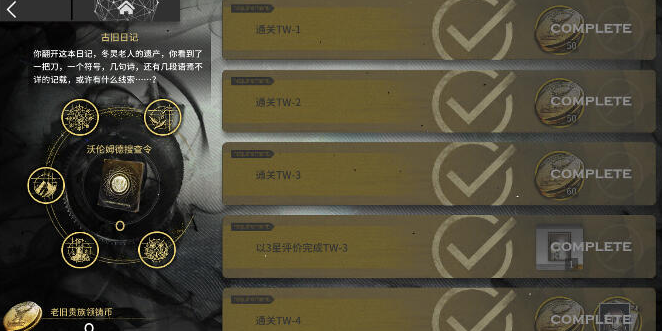 5.完成上面四个解锁隐藏关卡TW-S-1,通过获得