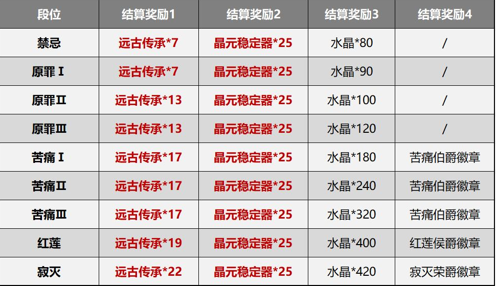 调整后,超弦空间每个段位将增加远古传承*7,晶元稳定器*25的结算奖励~
