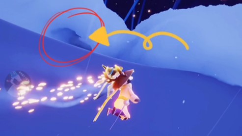 2、向后转身看到一个云洞,穿过云洞往前飞;