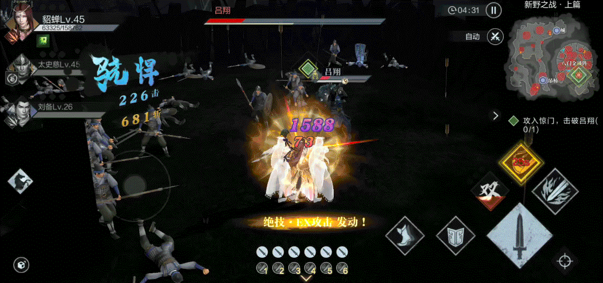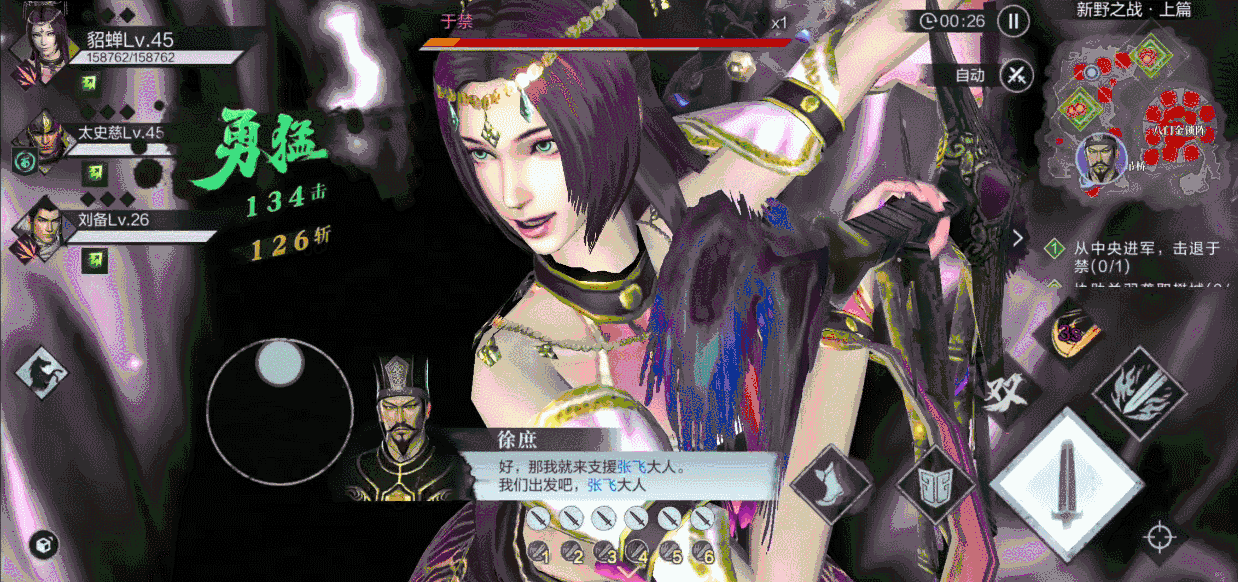 第一个任务就是要攻破于禁驻守的战略领地,于禁会派出大量兵力,建议先用大范围高伤害技能叠无双技,在面对于禁时直接使用绝技EX攻击第6套连招无双技的连招,秒杀于禁,以便快速到达樊城,接应关羽。