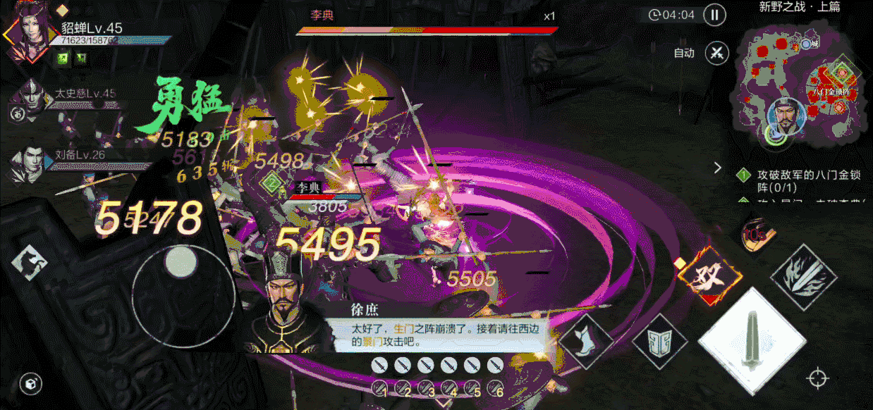 攻取樊城和夺取吊桥要分别战胜曹仁和朱灵,但这两个阶段的难度相对简单,所以建议只用普通的技能连招就行,能打破绽就打破绽,最好能保留2至3个无双技能,方面攻略最后的难点八门金锁阵。