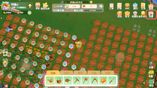 1.打开右上角的【店铺】,通过店铺来升级工具;