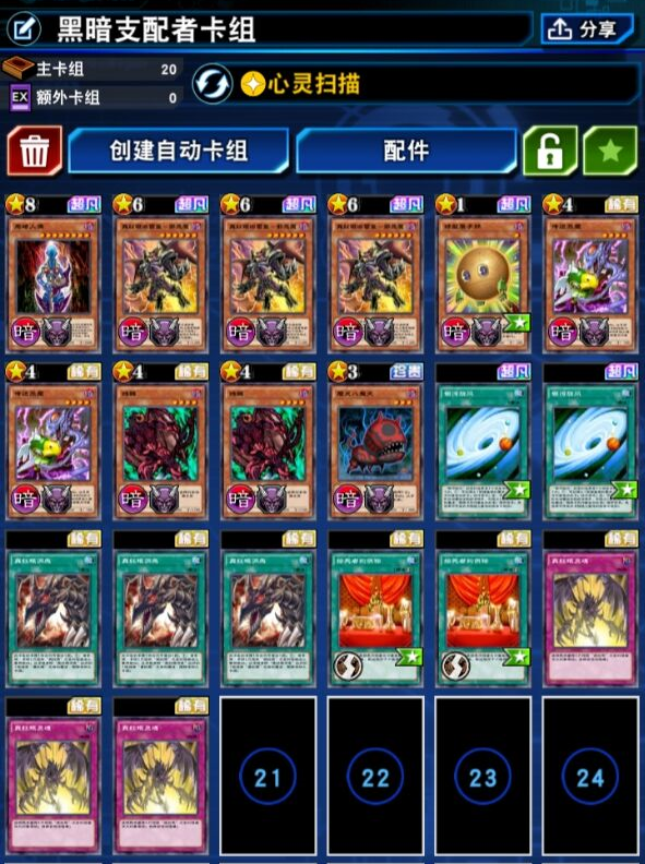 我相信最近各位打黑暗威加盘活动时都见识过貘良召唤黑暗人偶,貘良召唤黑暗人偶时会说一句召唤词:黑暗世界支配者--黑暗人偶,而这卡组的王牌怪兽正是这黑暗人偶,而为了衬托出这黑暗人偶的重要性,我更是把这卡组名改成黑暗支配者。