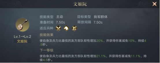 文姬阮可以给到刘备自身和另一名队友一定韧性,加上技能的额几率免控,可以在面对时控制队时发挥奇效,而在遇到非控制队时也能给到一定的伤害减免。
