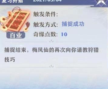 捕捉结束,梅凤仙的再次向你请教狩猎技巧