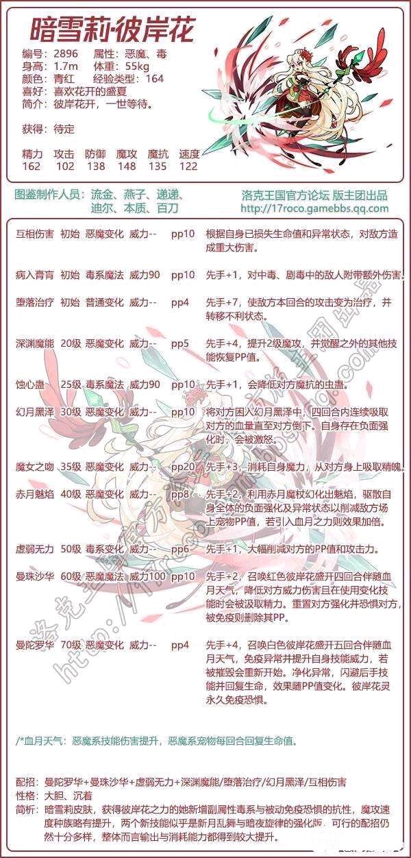 《洛克王国》暗雪莉彼岸花技能属性图鉴