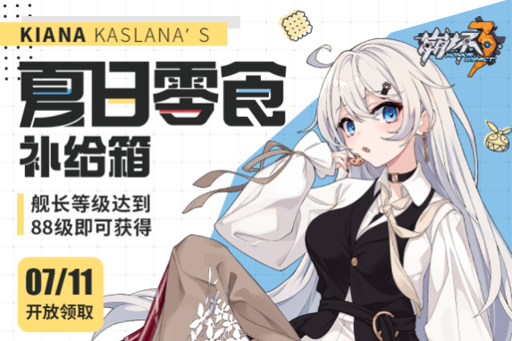 7月11日起至活动结束,全服等级达到88级的舰长均可获得琪亚娜赠送的「夏日零食补给箱」一份,内含零食饼干、亚克力立牌等丰富奖品,包装盒还隐藏了神秘“彩蛋”等你探索!