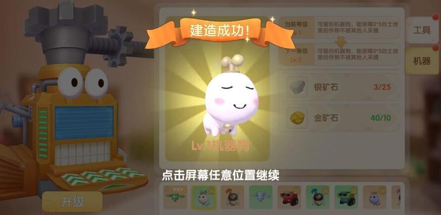 可以保护一定范围内的农作物不被别的玩家摘走。升级机器狗,还可以提高被保护的范围,具体如下: