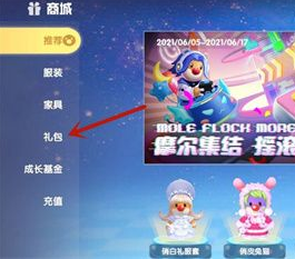 2、然后点击商城中的礼包;