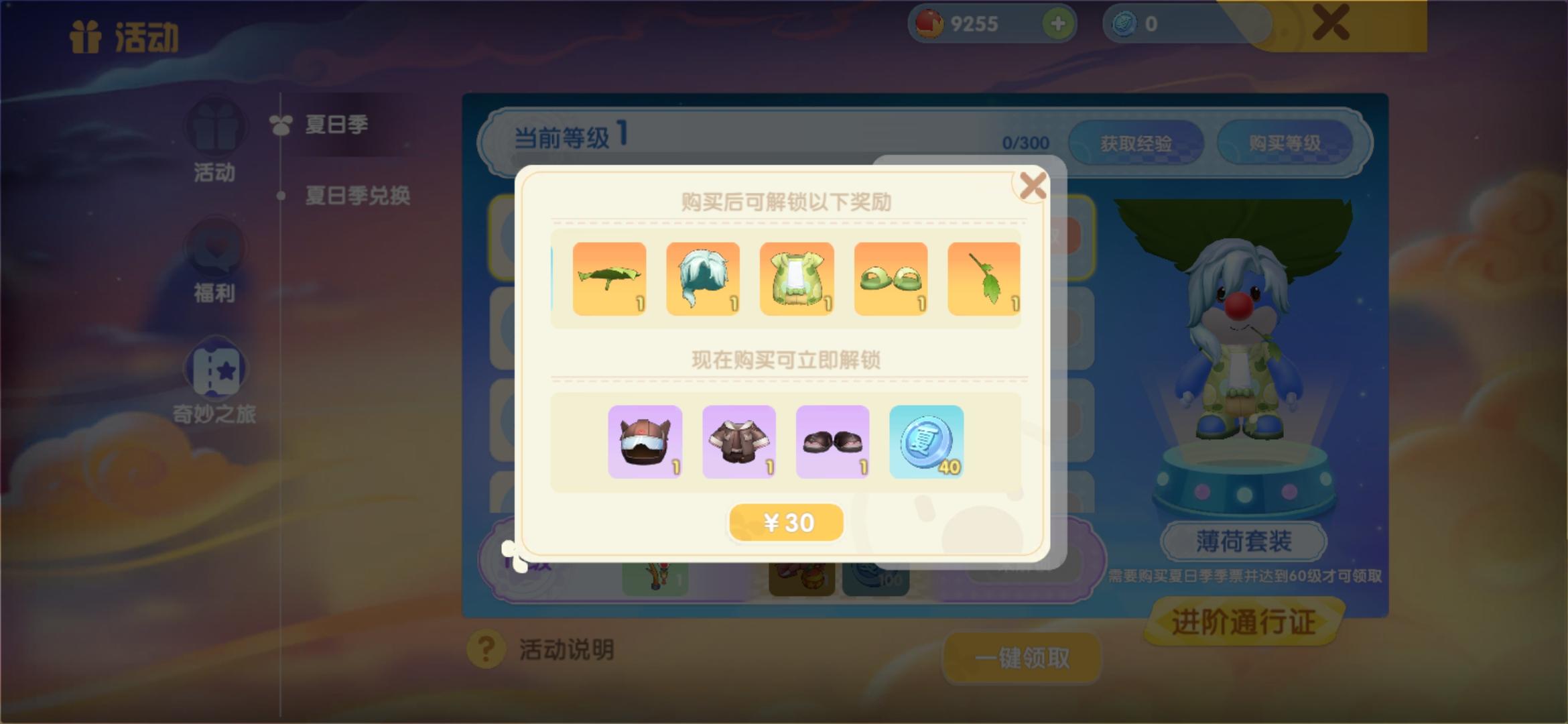 夏季通行证可通过完成任务获得季节经验,以提升季节等级领取奖励。开通进阶通行证还可领取更多丰厚奖励,包含通行证专属的薄荷套装以及超多可爱单品。
