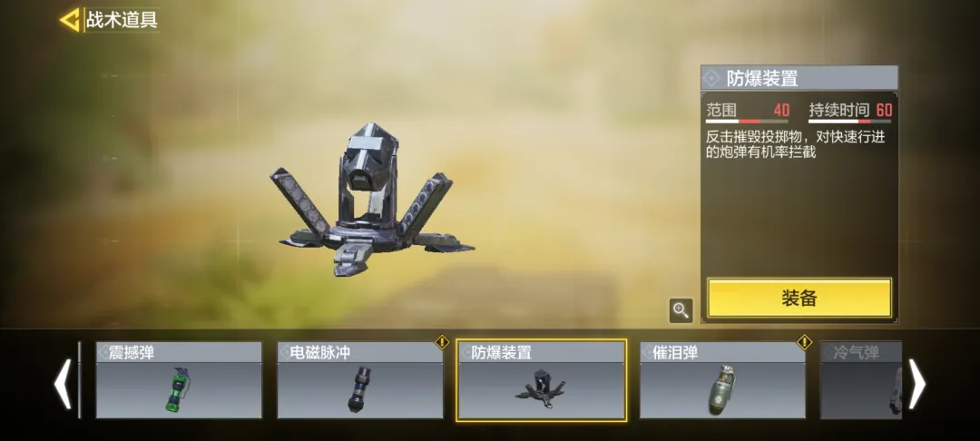 最核心的战术道具自然是防爆装置 ,作为守点方防爆装置,可以帮助化解一切投掷物的狂轰滥炸。