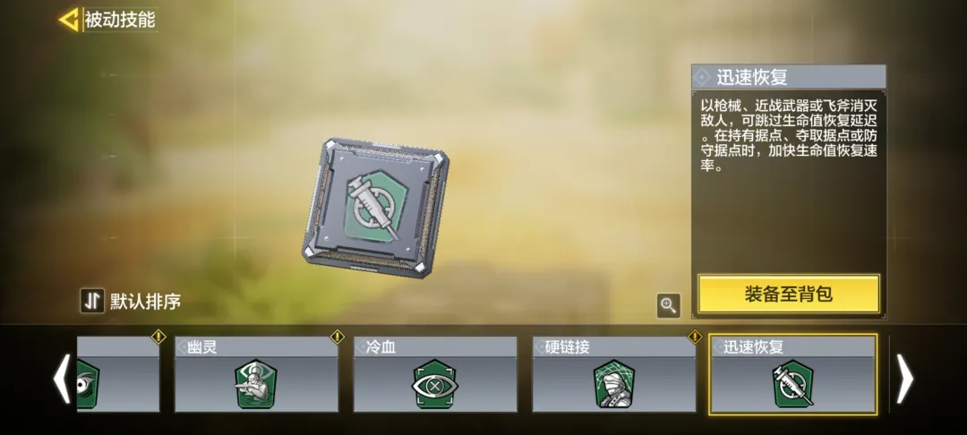 绿色技能推荐迅速恢复,在夺取或防守点位时可以加快生命值恢复。