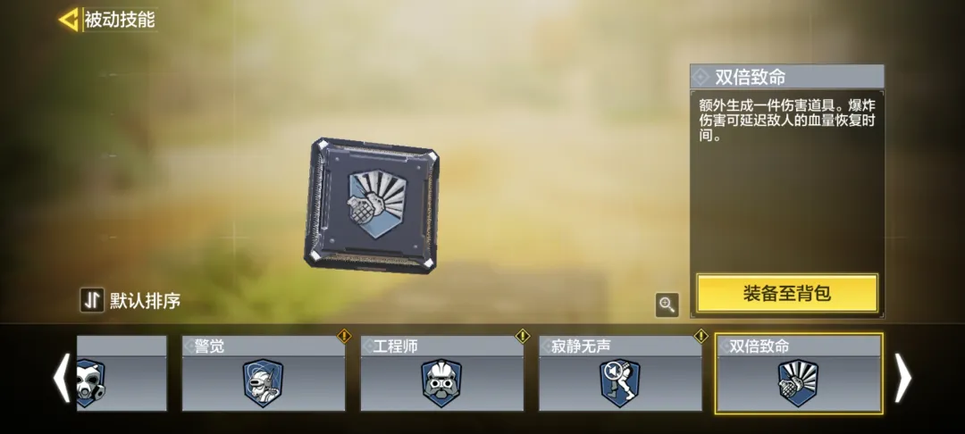 蓝色技能推荐战术面具或双倍致命,选择战术面具可以有效减少战术道具导致的负面影响时长,双倍致命则可以多生产一件伤害道具,并且造成伤害时,可以延迟敌人的血量恢复时间,创造更有效的破点机会。