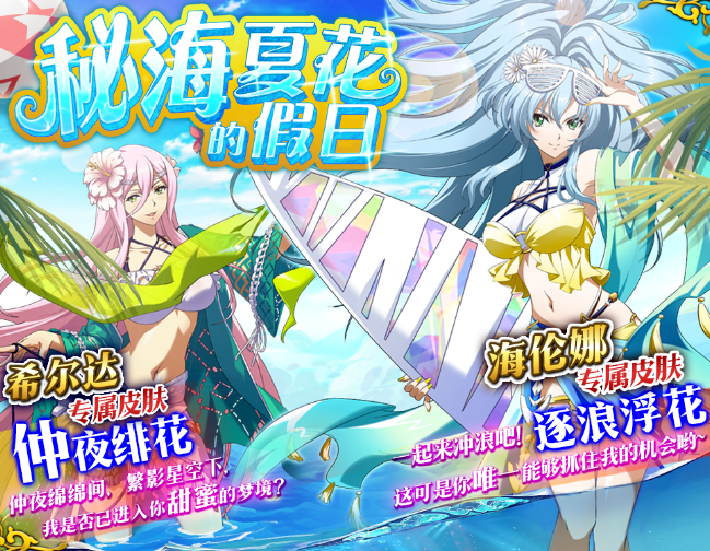 活动期间,全新限定皮肤希尔达【仲夜绯花】、海伦娜【逐浪浮花】限时上架商城,指挥官们不要错过哦!
