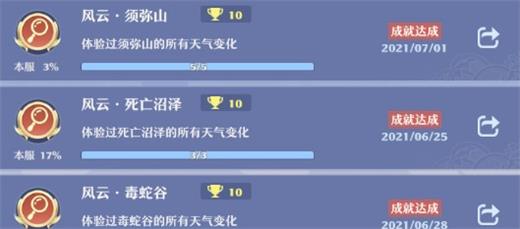 (2)【探索】,共300点成就都可以白嫖,每张地图都去逛一逛,因为游戏内的时辰是固定的,但每张地图的天气不固定,所以闲暇时间可以去各地图跑一跑,说不定就有各种雷暴天雨天触发奇缘,还能顺带完成地图的天气成就。