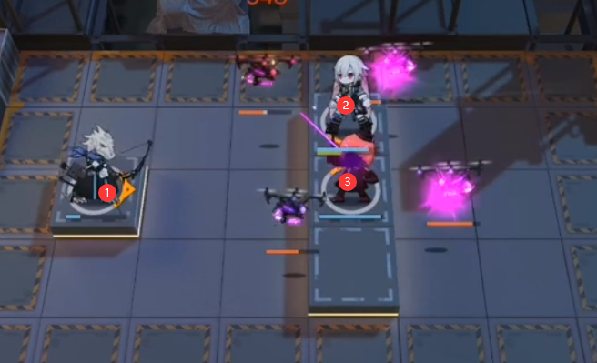 1.如图所示摆放干员,12F向右,安赛尔向下,杜林向上。