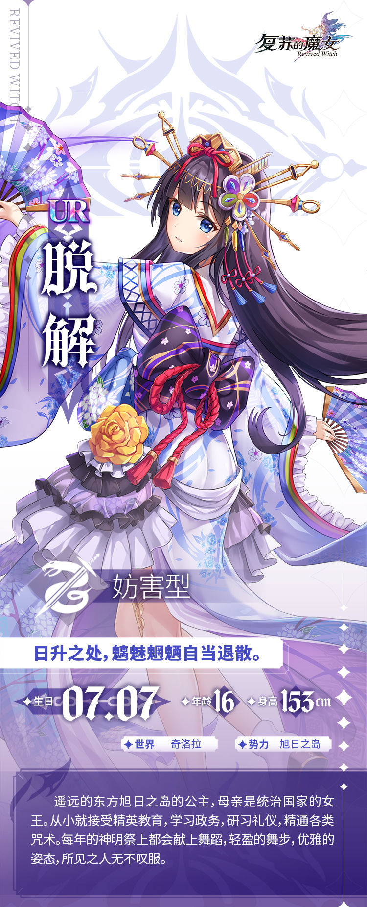 日轮公主脱解是一位品质达到了UR级别的角,可通过抽奖的方式概率获得,该角色在强度上达到T0.5,拥有全队增伤、治疗、提高生存能力的生存,且对负面BUFF以及敌方的增益BUFF有着不错的克制效果。