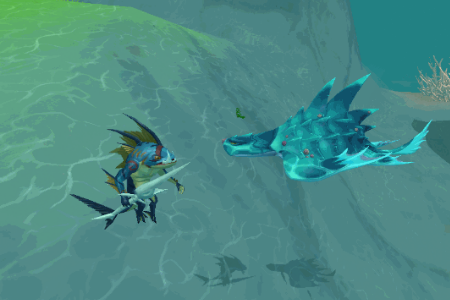 生活在沉眠之海的海龟,身上蓝与白色纹案如同粼粼波光,背部长有坚硬鳞刺以保护自己。