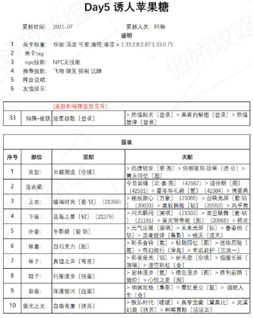奇迹暖暖的游戏中的诱人苹果糖作为盛夏熏风活动第五天搭配关卡,那么具体应该怎么搭配才能过关呢?可能还有很多小伙伴不清楚这个问题,不过没有关系小编给大家准备了相关的详细内容来帮助大家更好的了解,下面让我们一起来看看吧。