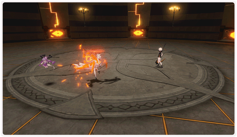 「西琳」释放必杀技,在目标位置生成魔法立场,点燃并禁锢在魔方位置的敌人,持续造成火焰元素伤害并引爆敌人。一段时间内,在魔法立场中的敌人受到的火焰元素伤害提高。