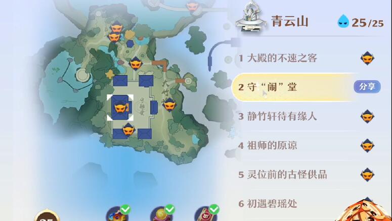 前往青云山的左下角位置,可以看到有很多的建筑,在其中一个房顶可以找到一个“绿色的烟尘”如下图: