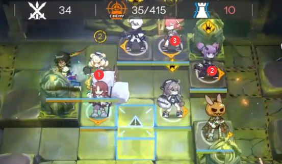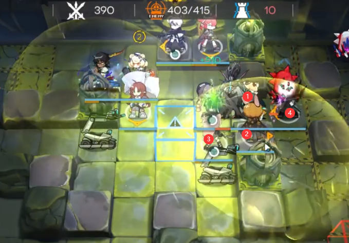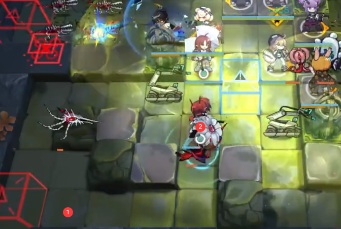随后右路下克洛丝(向右) → 蛇屠箱,克洛丝位置不能用能天使三技能【过载】。