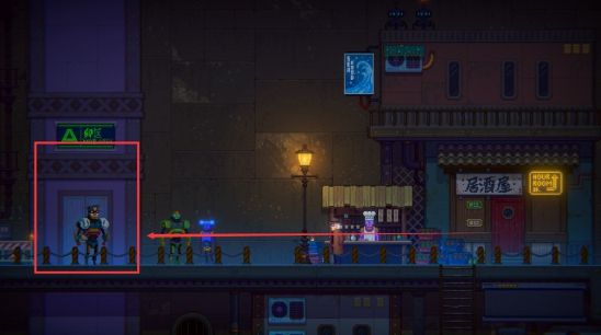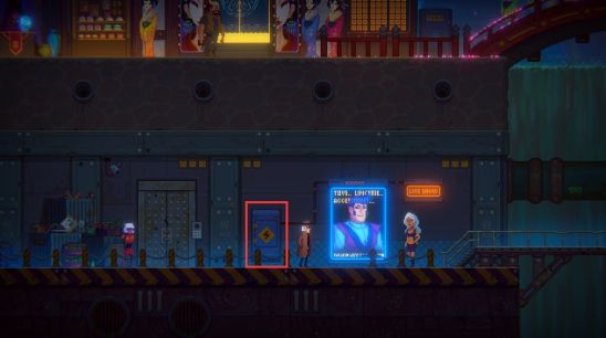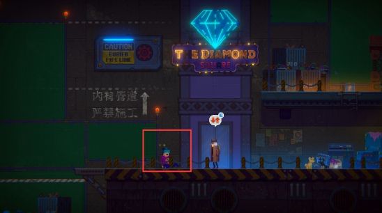 走过大桥会遇见第一个舞娘,阿俄伊得。她正在和屏幕的人对话,我们如果想要让她回去跳舞就得关闭屏幕。直接来到左边的电箱,准备断掉电源。