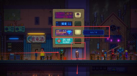 我们回到舞娘处,和舞娘说完话后她就会回去了。继续往左走,当A区的电梯能用后乘坐电梯(A区电梯使用权开启详见主线剧情),选择女仆咖啡厅。
