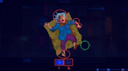 首先要在普通视野中调查下图4个位置,获得线索。