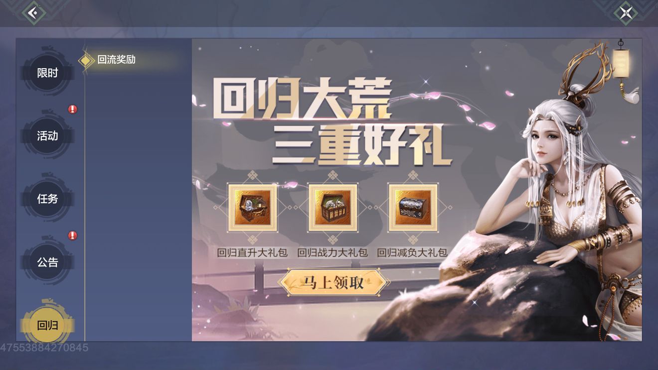 符合要求的回归旅者的进入游戏后可在游戏主界面寻得【福利】-【回归】页签,即可正式参与回归活动。活动时间结束后,活动入口将自动消失,别忘记领取奖励哦~