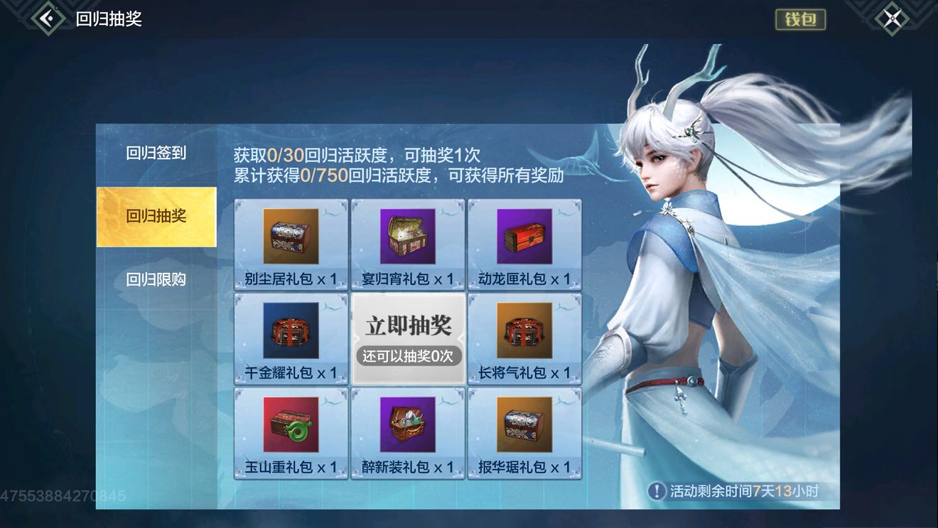 本次回归活动分为三个部分,分别是【登录礼包】【活跃抽奖】和【大折扣回归礼包】。