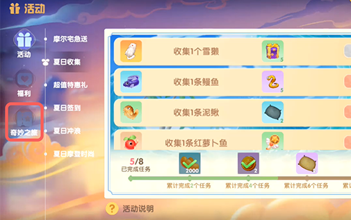 2.在左侧切换到【奇妙之旅】活动进入参与活动(更新后在活动左侧切换到【夏日季】);
