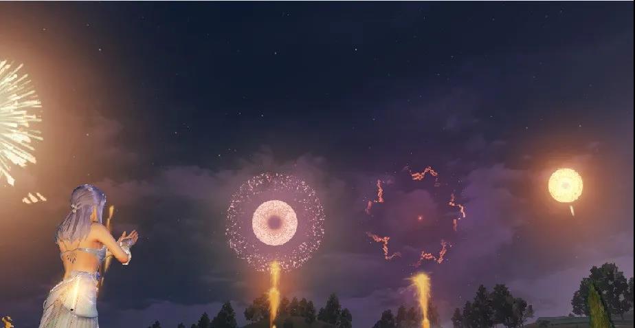 玩家与烟花合影留念即可获得烟花祈福奖励,包含烟花纪念宝箱和1000新币奖励