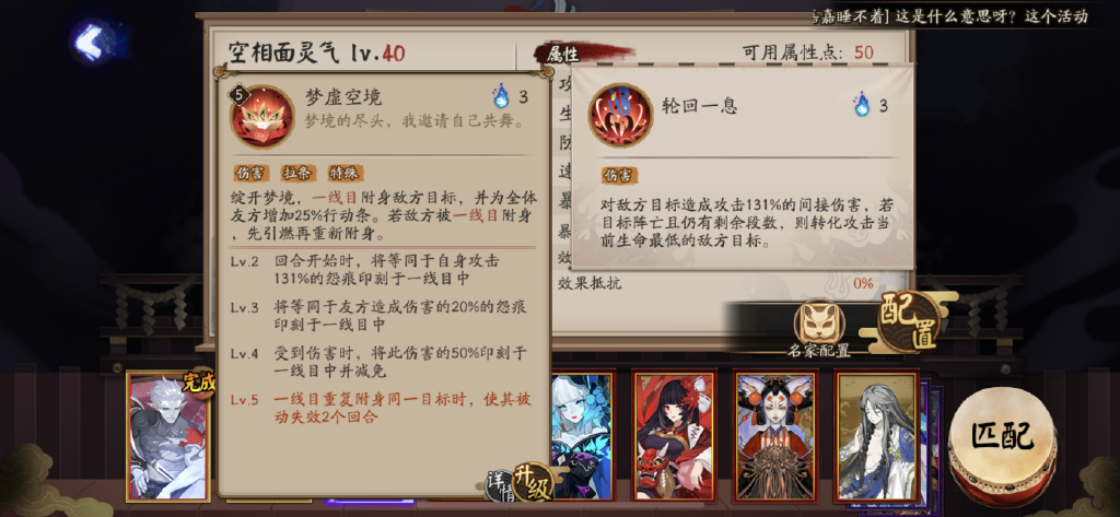 [通用,印记]引燃一线目,移除自身所有减益,将「梦虚空境」替换成「轮回一息」,恢复100%生命,攻击附加20%吸血效果。
