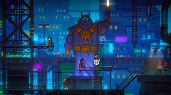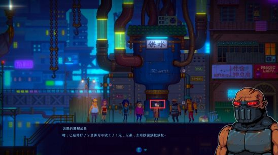 在途经广场街的时候,会遇见黑帮守卫和一群人站在一个供水装置边,原来是供水设备出现了故障,和黑帮说话后可以选择接取【修理供水】支线任务,我们接取任务。