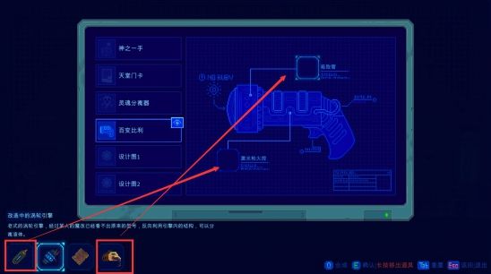 用刚才的组合装置选取百变比利的图纸,合成百变比利。吸取管槽放入【迷你吸尘器】,激光枪火控槽放入【激光枪火控器】。