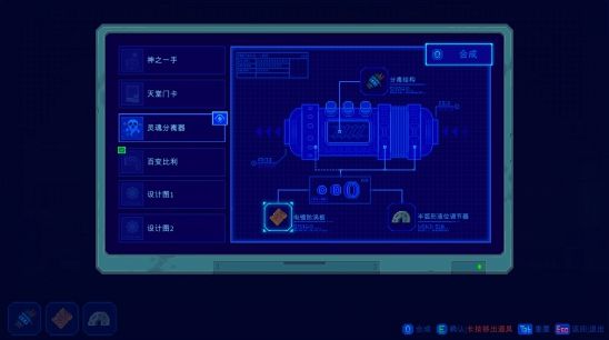 刚才的组合装置选取灵魂分离器的图纸,合成灵魂分离器。在分离结构槽放入【改造中的涡轮引擎】,在半弧形液体调节器槽放入【半弧形金属】,在电镀防涡板槽放入【电镀金属板】。