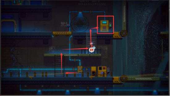 沿下图路线操作控制台,放下三层的吊桥,走过吊桥。