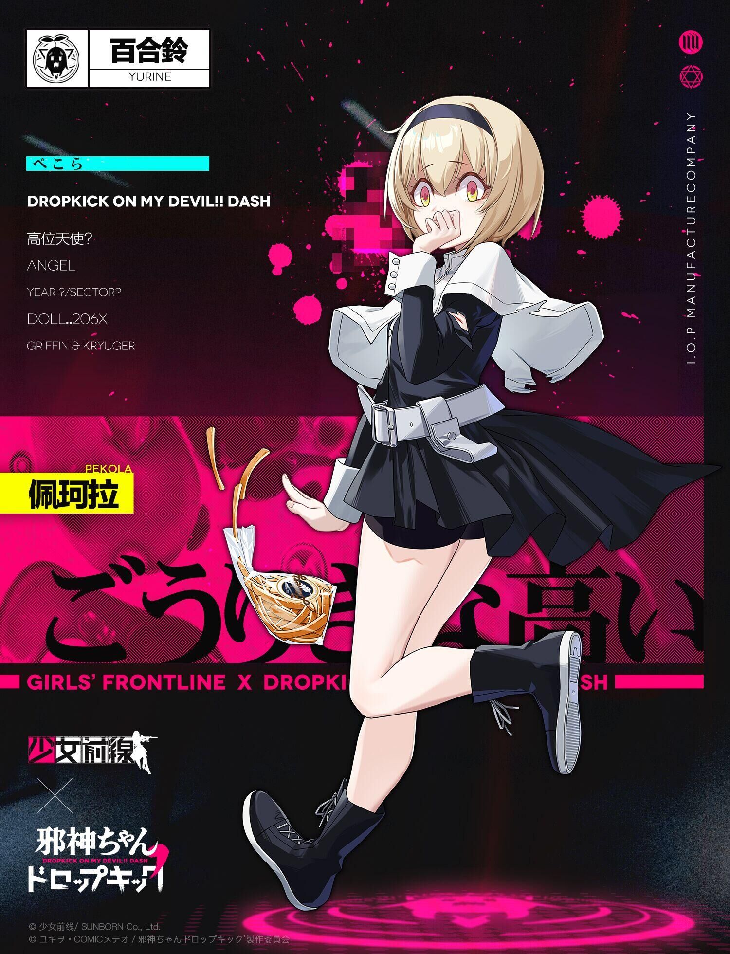 身上穿着黑白相间的连衣裙与短裤,虽然是天使但印堂发黑,双眼无神,表情经常崩坏,可以说是本作中的颜艺担当。
