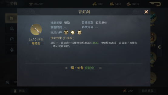 所以,最终小还是推荐主公们可以尝试给关银屏装备涯角枪或是青釭剑,前者可以给到一定的群攻能力,后者则可以针对敌方高统率的将领。