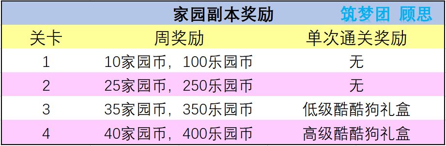 酷酷狗分1-4等级,人多的家园可以挑战比较高级的,家族成员可以共同加入,击杀强力的酷酷狗。(副本三十分钟内可以多次发起挑战,单次必须要在8分钟之内将其击杀,否则酷狗会狂暴,秒杀所有人)