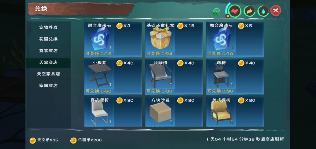 领取的家园币和乐园币可以在家园商店和天空商店兑换家具服饰等。