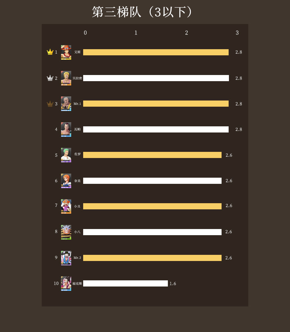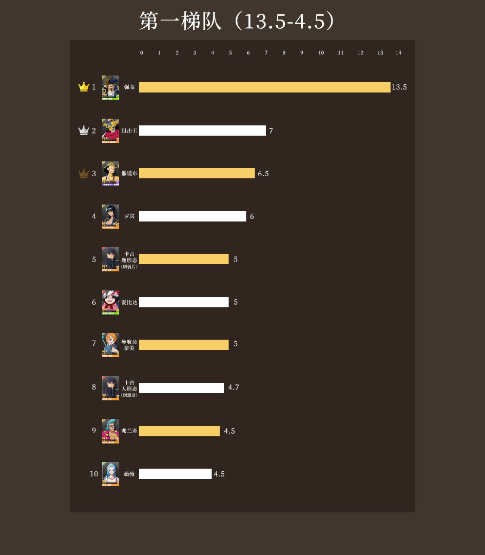 可能有些小伙伴会说我攻击距离比他远,我怎么还A不过他!问得好,那是因为攻击起手动作的和前摇原因,例如乔巴,小小的体型攻击距离却有3格,在他攻击时,会顺势往前挪动一格,再加上自身的攻击距离总共3格,所以很难对拼!再比如普攻的神a山治,普攻几乎顺发,距离3.6格,大多数技能都怼不过他,属实强势!