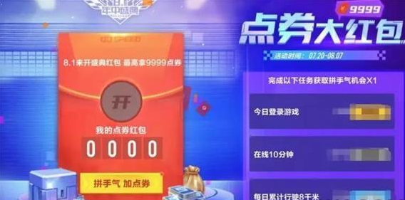 (2)完成指定任务,即可获得拼手气增加点券机会,最高可将点券红包内增加至9999点券!
