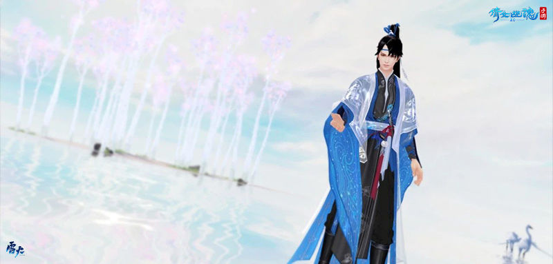 佩鸣玉以比洁,齐幽兰以争芬。常闻听仙人之姿,却不曾见过。此次,玩家可以穿上剧情同款的【云巅仙踪】时装,效仿仙人云游三界。云巅仙宗女装整体采用了纯洁淡雅的蓝白两色,服装配饰上也化繁为简,全身仅用少数银色金属饰物,并加以腰间的暖玉吊饰点缀。由于独特的设计及材料的质感,女款时装极为契合众人印象中仙人宁静淡泊的气质。此外,为了整体效果更加和谐,在发饰方面,开发组也参考并结合了古今发饰的特点,简洁而不简单。