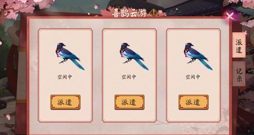 「喜鹊云游」玩法中,阴阳师大人可向好友派出喜鹊。