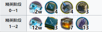 【精2】:12W龙门币、近卫双芯片*3、酮阵列*7、轻锰矿*13